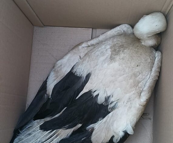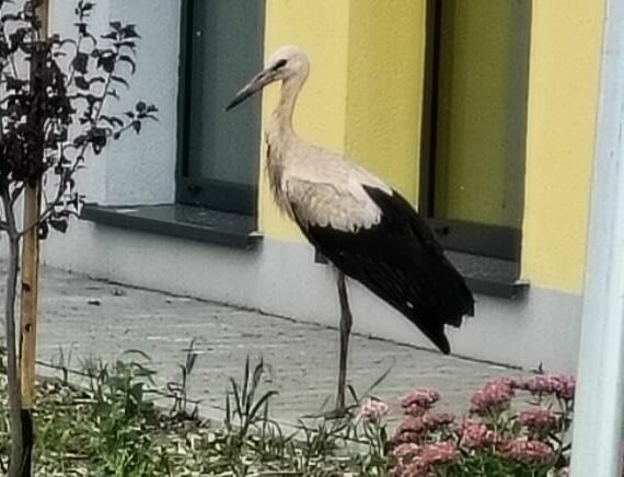 Od kilku dni obserwowaliśmy bociana, który pomimo podejmowania prób, nie mógł oderwać się od ziemi. Inne bociany już jakiś czas temu opuściły okoliczne tereny a ten niestety pozostał. Poprosiliśmy o radę Gabinet weterynaryjny „Centaur”. Bez wahania zgodzili się pomóc, za co jesteśmy bardzo wdzięczni. Udało nam się bez większych trudności złapać ptaka i bezpiecznie umieścić go w kartonie na czas transportu. Mamy nadzieję, że nasz bociek, po otrzymaniu fachowej opieki, będzie mógł kiedyś wznieść się w powietrze. A my z pewnością będziemy śledzić jego losy.