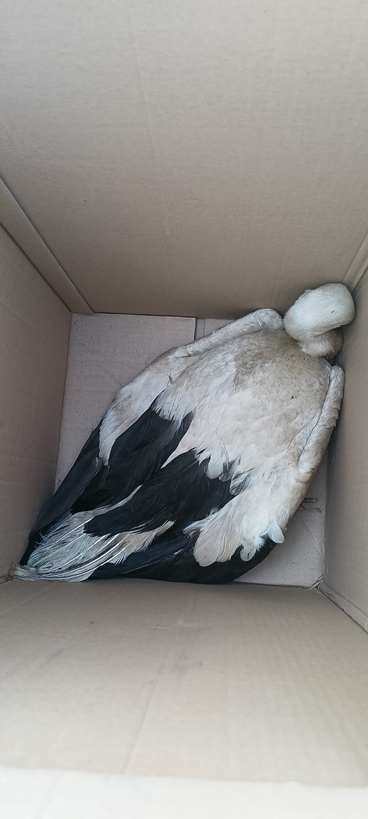 Od kilku dni obserwowaliśmy bociana, który pomimo podejmowania prób, nie mógł oderwać się od ziemi. Inne bociany już jakiś czas temu opuściły okoliczne tereny a ten niestety pozostał. Poprosiliśmy o radę Gabinet weterynaryjny „Centaur”. Bez wahania zgodzili się pomóc, za co jesteśmy bardzo wdzięczni. Udało nam się bez większych trudności złapać ptaka i bezpiecznie umieścić go w kartonie na czas transportu. Mamy nadzieję, że nasz bociek, po otrzymaniu fachowej opieki, będzie mógł kiedyś wznieść się w powietrze. A my z pewnością będziemy śledzić jego losy.