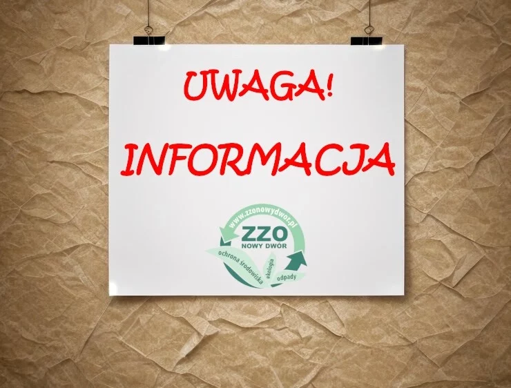 Uprzejmie informujemy, iż 2 maja 2025 roku (piątek) będzie dniem wolnym od pracy dla pracowników administracji Zakładu Zagospodarowania Odpadów Nowy Dwór Sp. z o.o., w zamian za dzień świąteczny tj. 3 maja 2025r. przypadający w dniu wolnym od pracy. Jednocześnie informujemy, iż przyjmowanie odpadów w tym dniu będzie odbywać się bez przeszkód. Za utrudnienia przepraszamy.