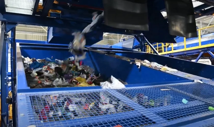 Potrzeba sprawnego oka, aby nadążyć za tym urządzeniem. Wygląda jak chaos a w rzeczywistości to twórczy porządek😉 Dzięki wykorzystaniu praw fizyki rozdzielane są odpady płaskie np. folie od odpadów przestrzennych np. butelek. Zobaczcie separator balistyczny podczas pracy.
