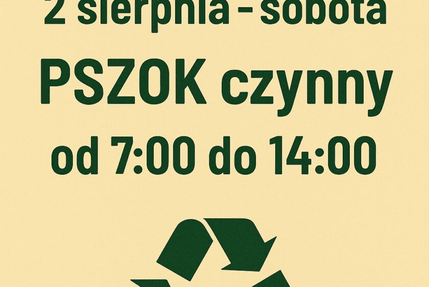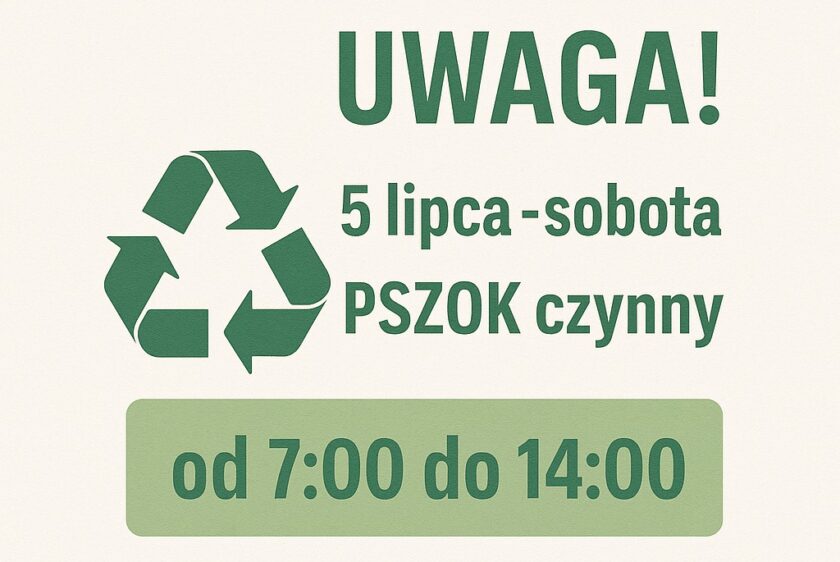 Jesienne porządki czas zacząć! Zbliża się idealna okazja, aby pozbyć się niepotrzebnych rzeczy i odpadów w sposób odpowiedzialny dla środowiska. Zapraszamy do Punktu Selektywnego Zbierania Odpadów Komunalnych (PSZOK) w najbliższą sobotę (6 września) w godzinach 7:00 – 14:00. Zadbajmy wspólnie o czystość i piękną przestrzeń wokół nas. Przywieź odpady, których nie możesz wyrzucić do zwykłego […]