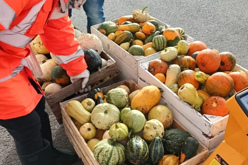 W tym roku ponownie założyliśmy uprawę dyń ozdobnych na naszych „polach badawczych”. Na jednej działce hodowaliśmy dynie na podłożu z dodatkiem środka poprawiającego właściwości gleby pod nazwą „Nowodworek” zaś na drugiej bez polepszacza. Trzeba zaznaczyć, że tegoroczne lato nie sprzyjało uprawie dyń. Niskie temperatury powietrza nie pozwoliły na prawidłowy wzrost owoców, ale i tak zaobserwowaliśmy sporą różnicę pomiędzy uprawami. Na działce z „Nowodworkiem” rośliny były silniejsze i miały znacznie więcej owoców niż te rosnące na uprawie bez polepszacza. W tym roku zebraliśmy 5 skrzynek dyń z pola z Nowodworkiem i niecałą skrzynię z pola bez Nowodworka. W porównaniu wagowym (po odjęciu wagi skrzynek) zebraliśmy 149 kg dyń z pola uprawianego z dodatkiem polepszacza i 25 kg dyń z pola bez Nowodworka.