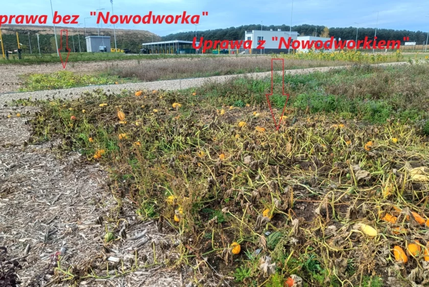 Nareszcie nastał dzień dyniobrania z naszych upraw badawczych. Nie spodziewaliśmy się takich wyników! Z pola uprawianego bez użycia polepszacza glebowego zebraliśmy 13,5 kg owoców (po odjęciu wagi kosza 1,78 kg). Owoców było niewiele i były niewielkich rozmiarów, nawet jak na odmiany dyń ozdobnych. Natomiast z pola, które zostało zasilone środkiem poprawiającym właściwości gleby pn. Nowodworek zebrano… aż 140,1 kg!!! (po odjęciu wagi pojemników, w których dynie były ważone). Ponad 10 razy więcej! Dynie z pola nawożonego polepszaczem były zdecydowanie większe i było ich znacznie więcej. Zobaczcie pełną relację na naszym Instagramie!