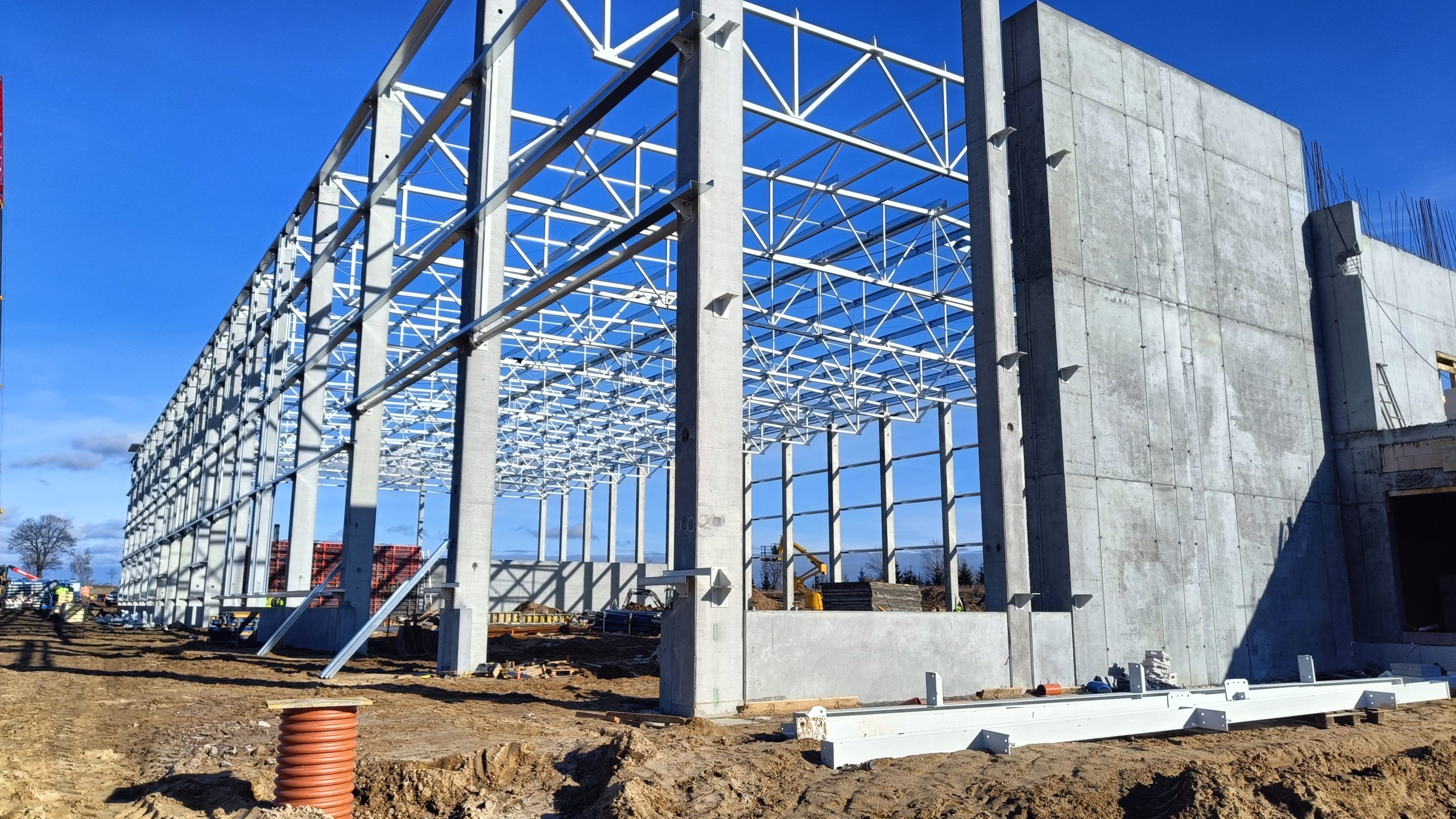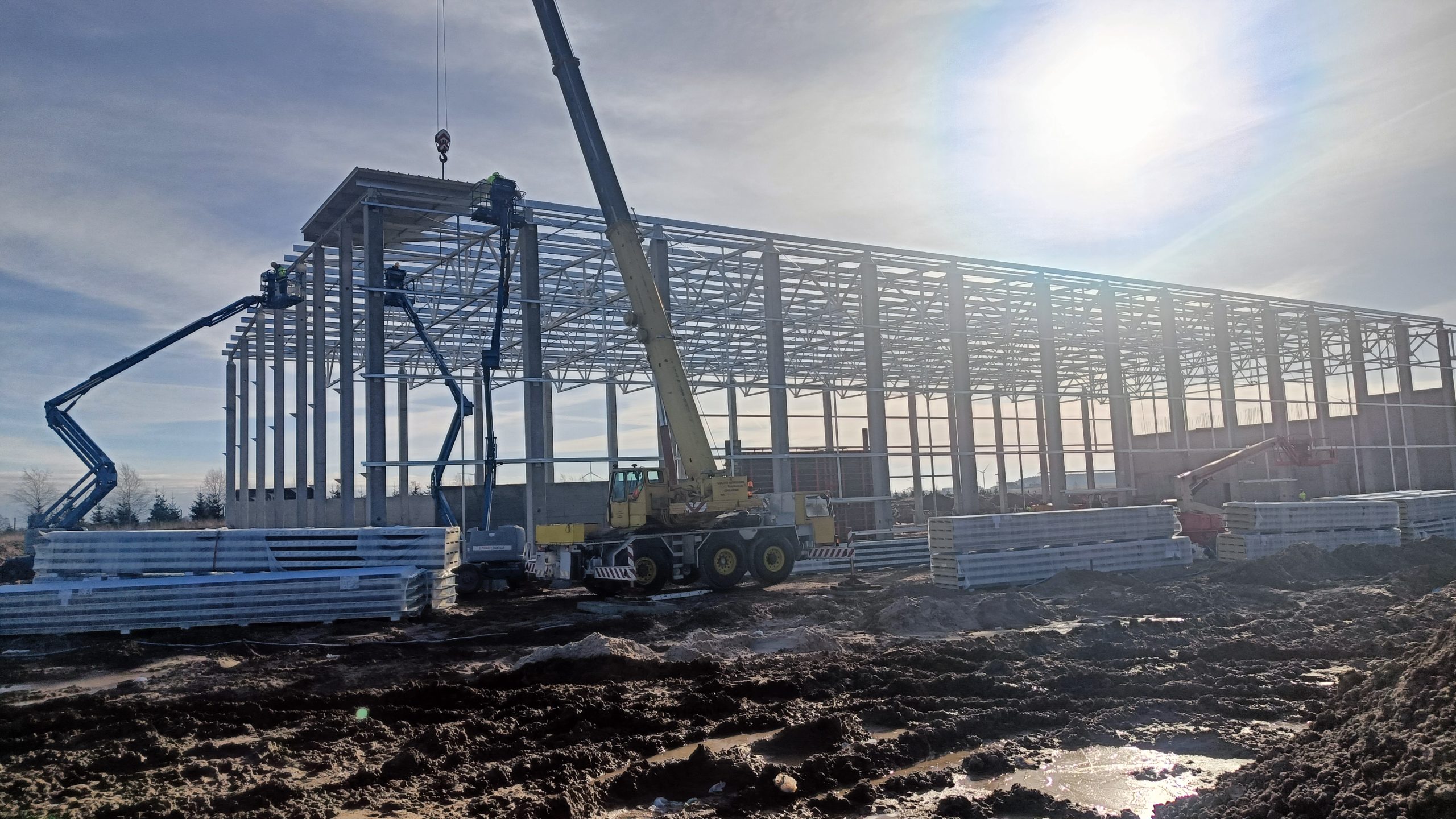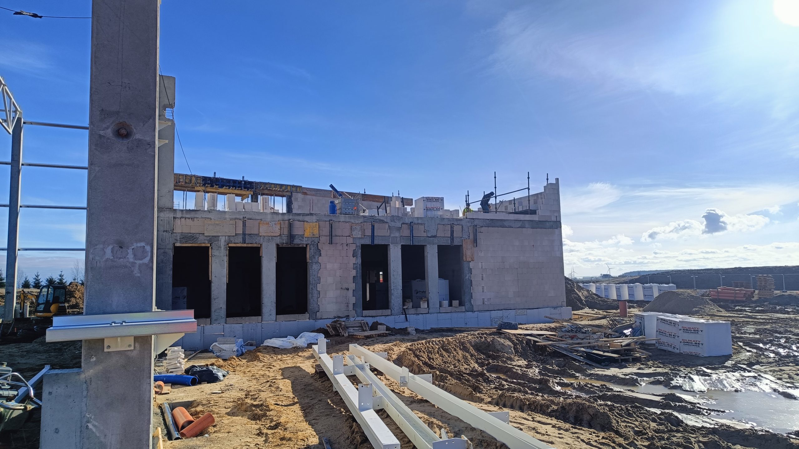 Mija kolejny tydzień realizacji inwestycji budowy sortowni i ponownie możemy zaprezentować satysfakcjonujący postęp prac budowlanych. Rozpoczęto już montaż poszycia dachu oraz kontynuowane są prace murarskie w budynku socjalnym.