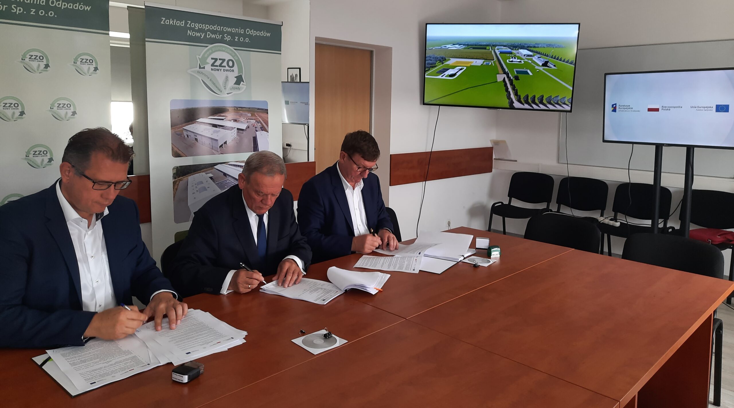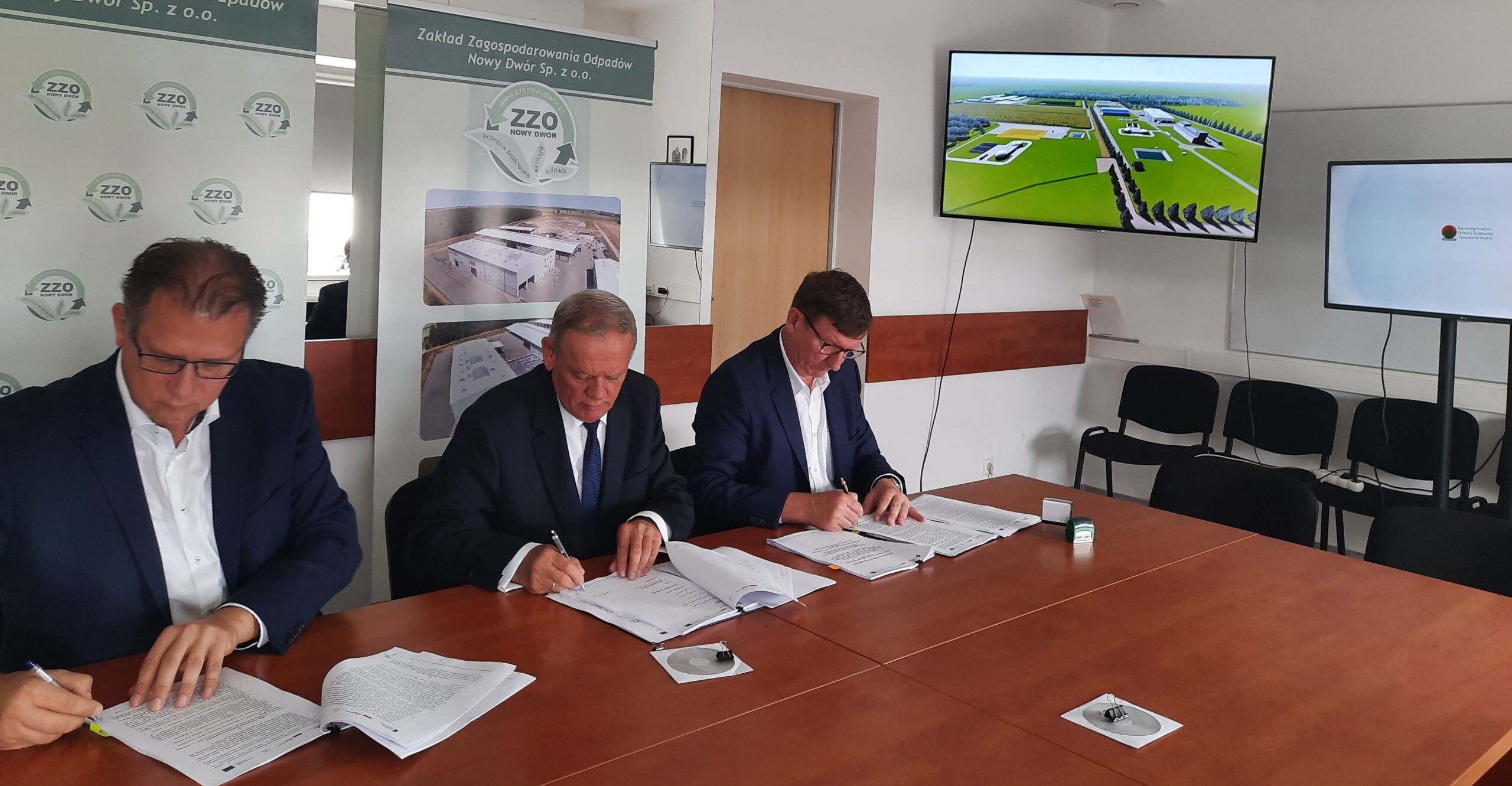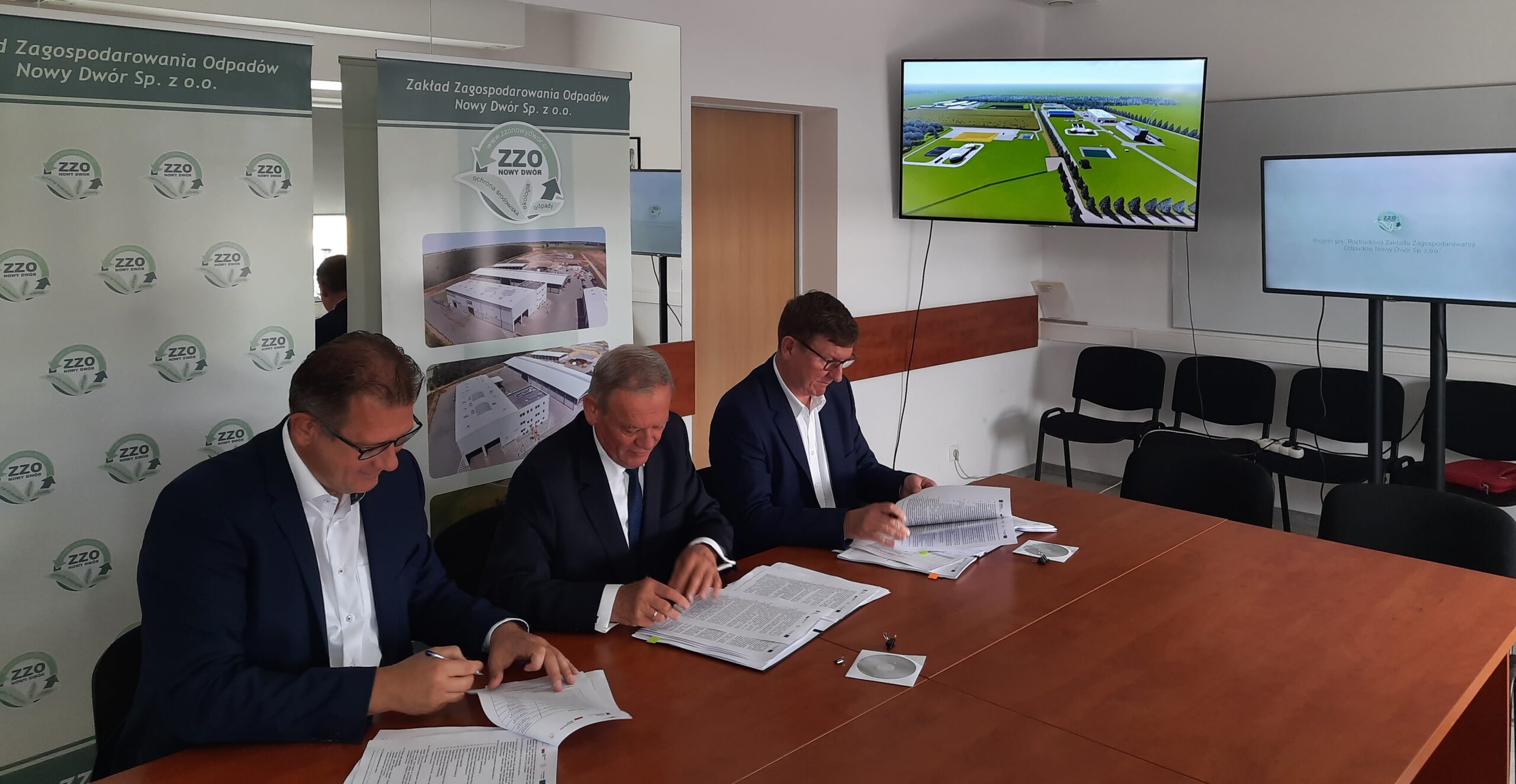 Zakład Zagospodarowania Odpadów Nowy Dwór Sp. z o. o. uprzejmie informuje, iż 8 lipca 2022r. w siedzibie spółki nastąpiło podpisanie umowy na wykonanie zadania pn. „Dostawa i montaż linii technologicznej wraz z zaprojektowaniem i budową hali sortowni, infrastruktury towarzyszącej, ścieżki edukacyjnej oraz przebudową i rozbudową istniejącego placu na odpady budowlane z przeznaczeniem na plac na bioodpady i polepszacz glebowy, w ramach projektu pn. ”Rozbudowa Zakładu Zagospodarowania Odpadów Nowy Dwór Sp. z o.o.”” z konsorcjum firm:
