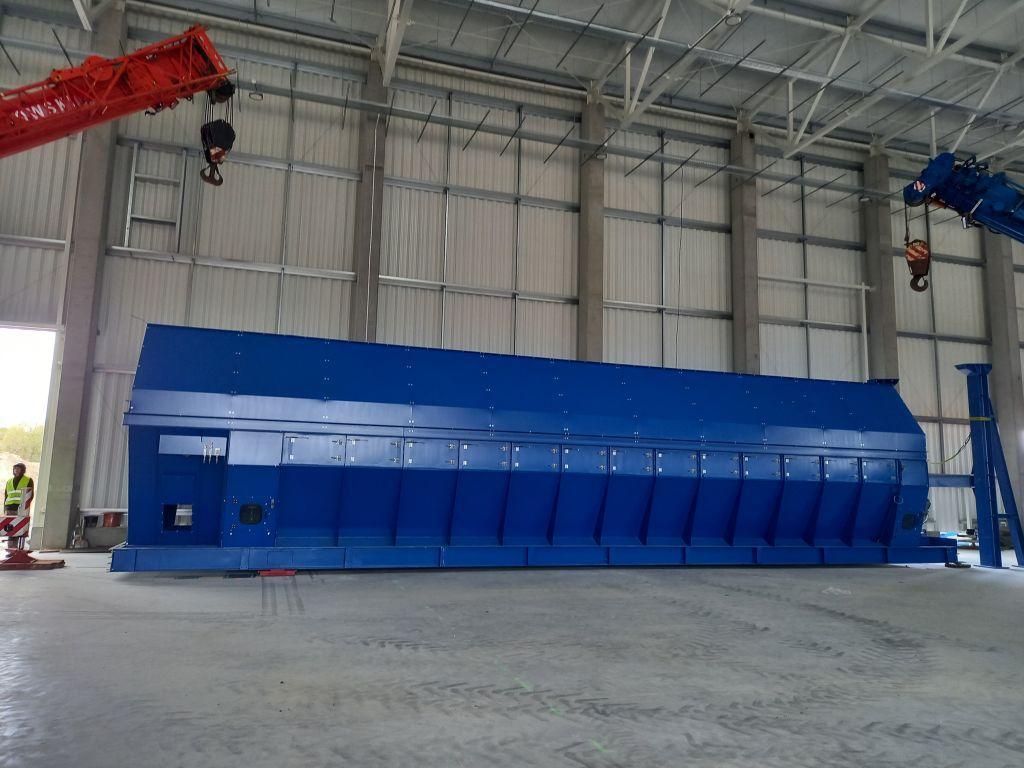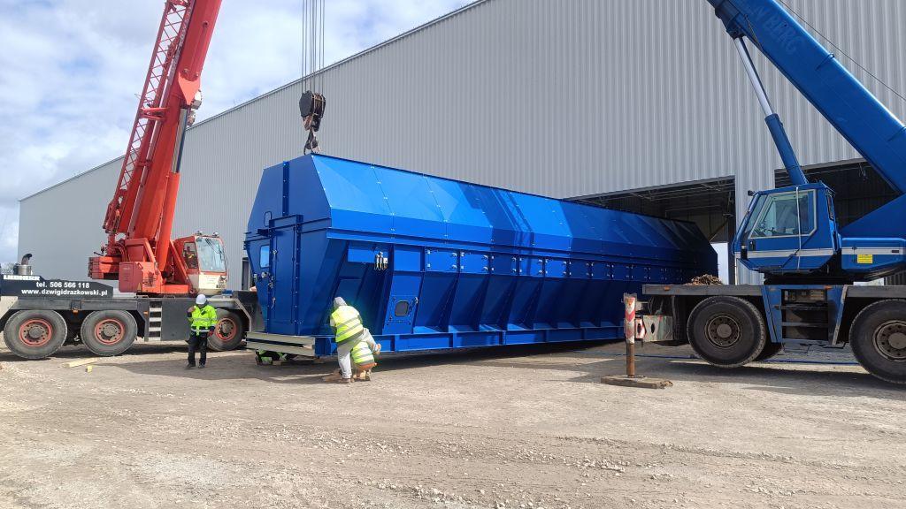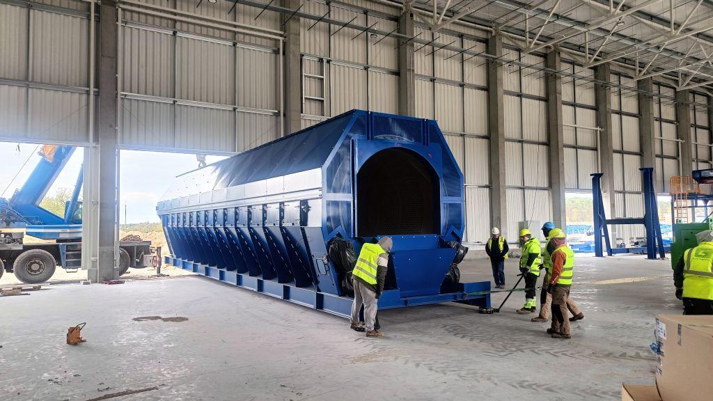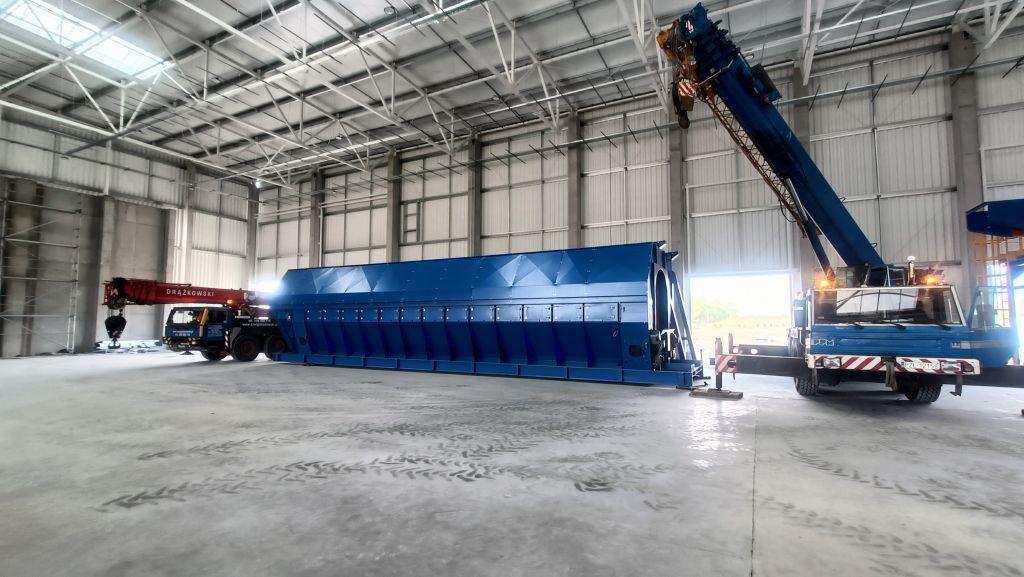 bębenW ostatnich dniach byliśmy świadkiem dużej operacji logistycznej polegającej na montażu sita bębnowego w hali nowej sortowni. Gabaryty urządzenia są imponujące: samo sito ma 13 m długości i 3 m średnicy. Sito posiada otwory o średnicy w pierwszej części 40 mm a w drugiej 340 mm. Sito bębnowe będzie jednym z pierwszych etapów przygotowania odpadów do segregacji na poszczególne frakcje. Pozwoli ono na odsianie bardzo drobnej frakcji, która jest zanieczyszczeniem w dalszym procesie. Pomimo rozmiaru sita, montaż przebiegał bez problemu, a nawet można by rzec z lekkością. Zachęcamy do obejrzenia zdjęć z tego wydarzenia.