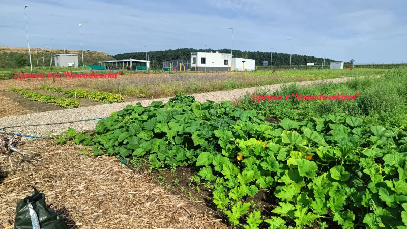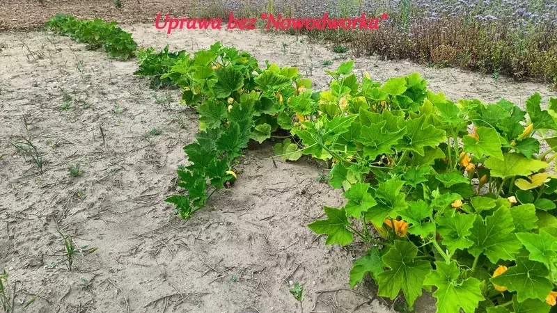 Już czas, aby pokazać światu realizację naszego nowego projektu. Od wiosny prowadzimy niewielką uprawę badawczą. Testujemy jak rosną różne rośliny na podłożu z dodatkiem środka poprawiającego właściwości gleby, czyli naszego „Nowodworka” w porównaniu z glebą bez nawożenia. Po długich tygodniach oczekiwania możemy pochwalić się pierwszymi efektami obserwacji. Na pierwszy ogień poszły dynie ozdobne. Rośliny zostały posiane w tym samym czasie i były tak samo pielęgnowane. Jedyną różnicą było podłoże, na którym rosną. Dynie uprawiane na ziemi z dodatkiem „Nowodworka” wykiełkowały nieco później, ale są zdecydowanie większe, mają ciemnozielone liście i licznie zawiązane owoce. Zresztą zobaczcie sami: